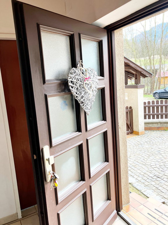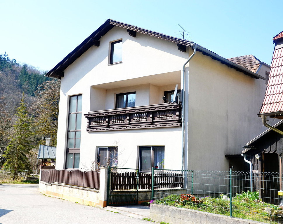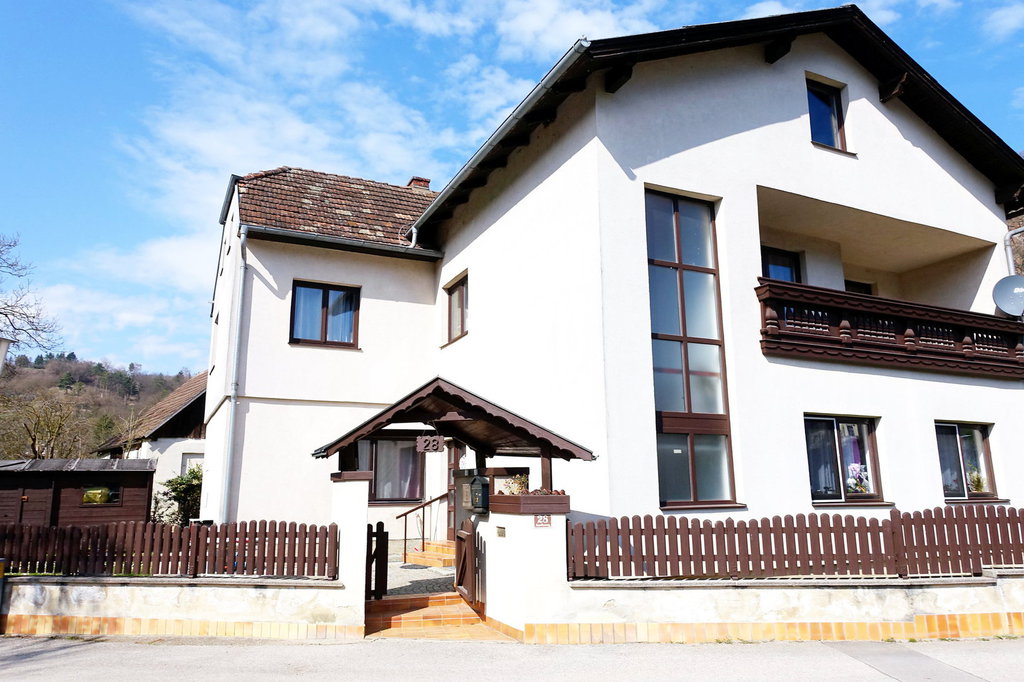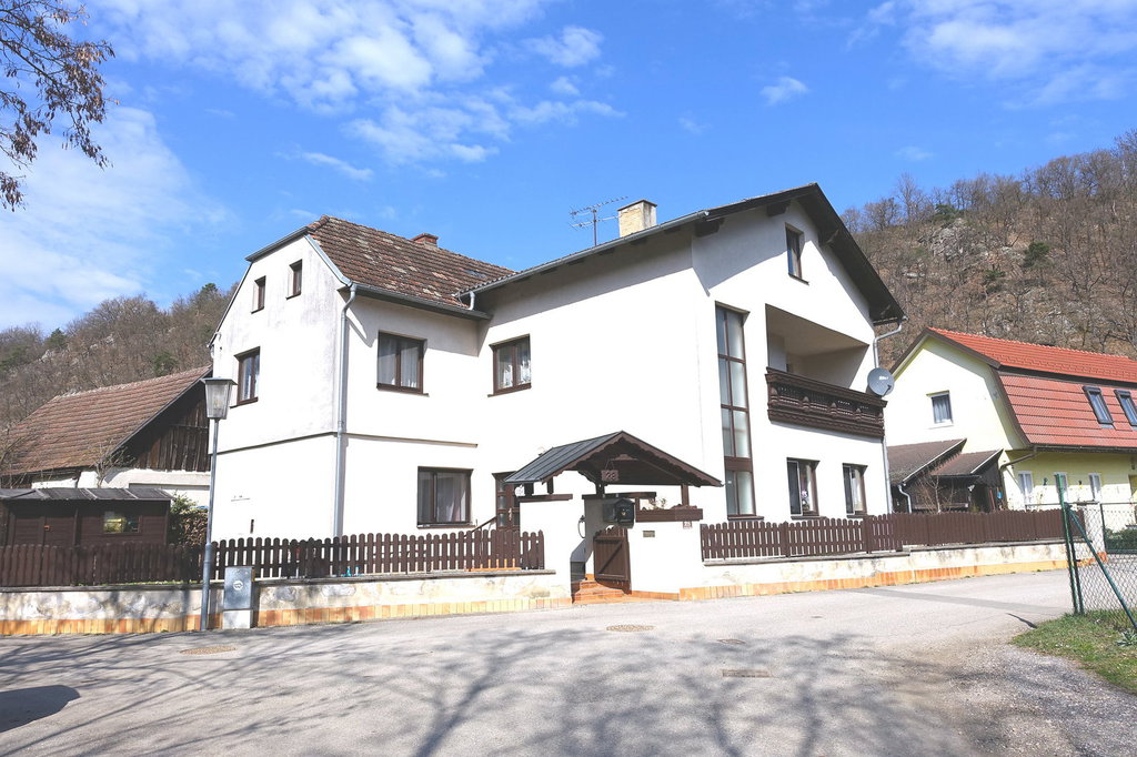Das 1978 erweiterte, 2-geschoßige, gepflegte Wohnhaus hat eine WNFL von 210 m². Das Haus wird teilmöbliert (Küchen- und Badeinrichtung etc.) verkauft. Im EG liegt die Wohnküche, Schlafzimmer, Zimmer, Kabinett, Speis, Diele, 2 Bäder, 2 WC. Im OG befinden sich eine Küche, Wohnzimmer mit Kachelofen und Balkon. Weiters ein Schlafzimmer, Kabinett, sowie ein Bad und WC. Ein Stiegenhaus verbindet die Geschoße vom Keller bis zum Dachboden. Im KG (teilunterkellert) ist der Heizraum und Lagerräume untergebracht.