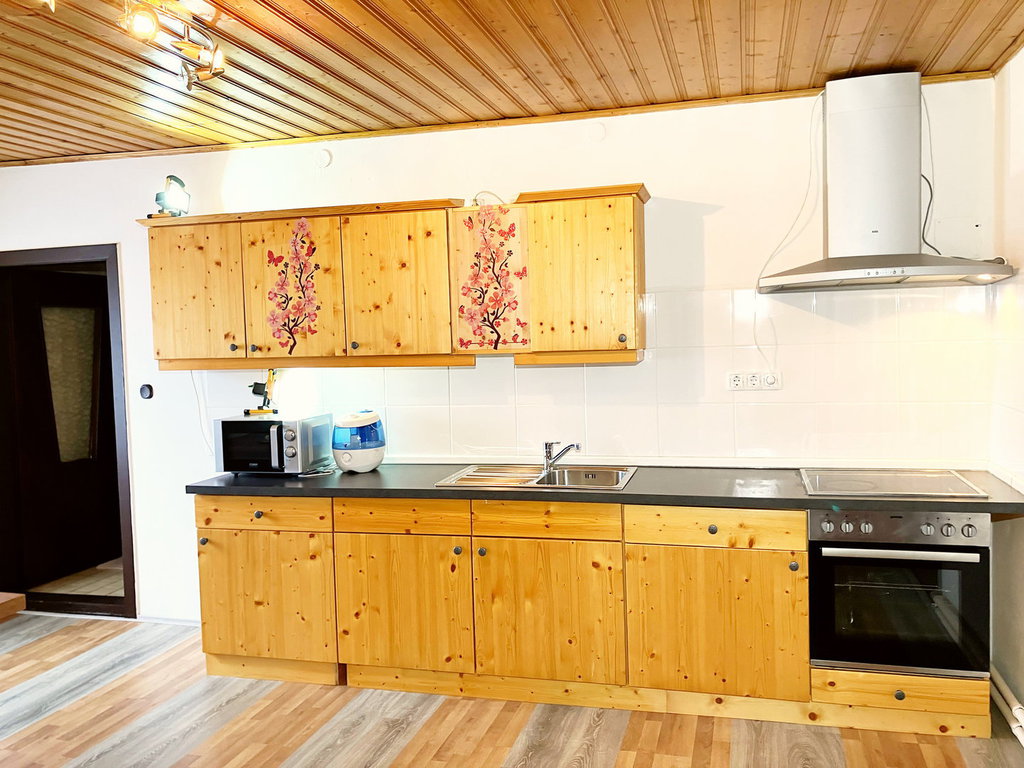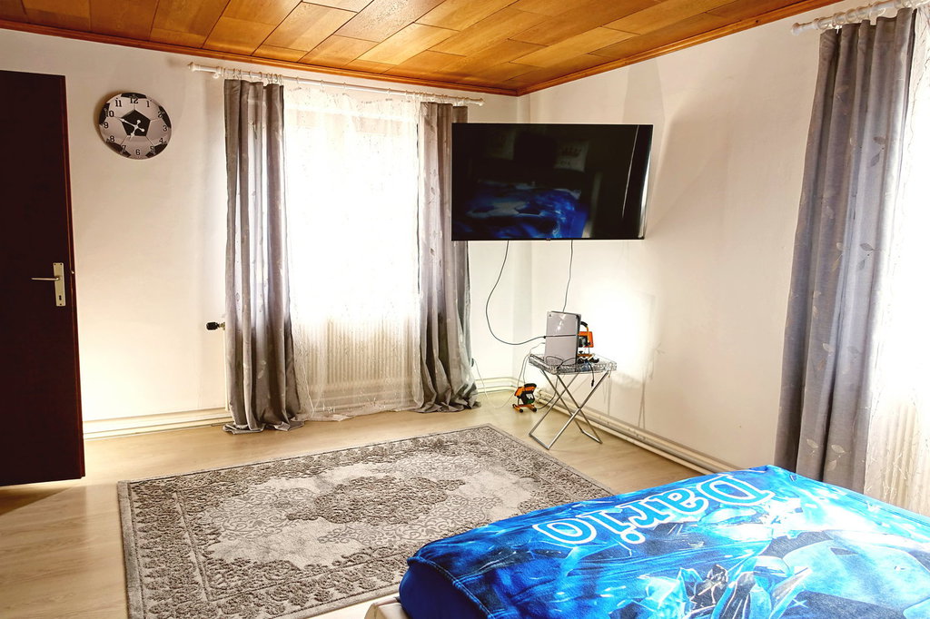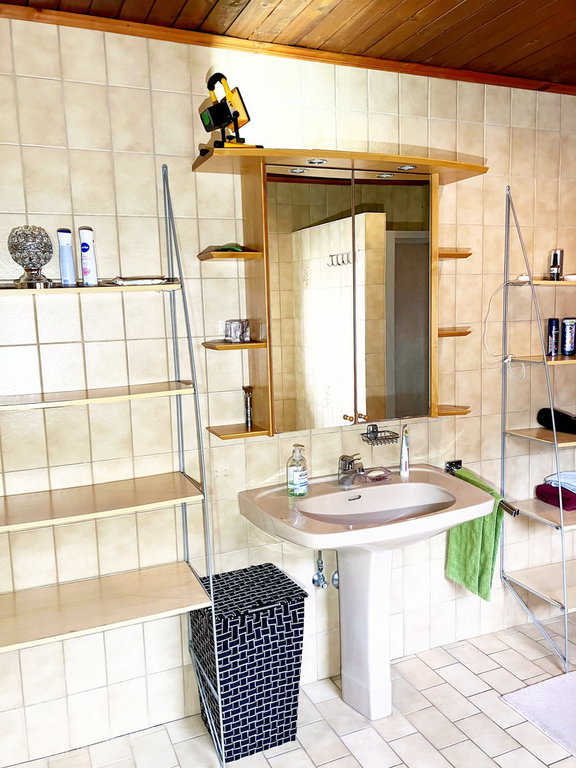 Das zweistöckige Wohnhaus wurde 1978 großzügig erweitert. Sowohl im Erdgeschoss als auch im Obergeschoss gibt es jeweils zwei eigenständige Wohneinheiten mit Küche, Wohn- und Schlafzimmern sowie Nebenräumen. Im Erdgeschoss sind zwei Bäder mit WC vorhanden, während im Obergeschoss ein Bad und ein WC zur Verfügung stehen.