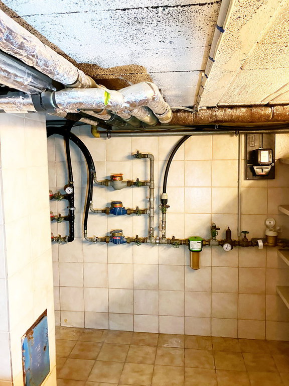 Heizung: Gaszentralheizung mit Wandheizkörper | Warmwasser: Speicher 390 Liter.